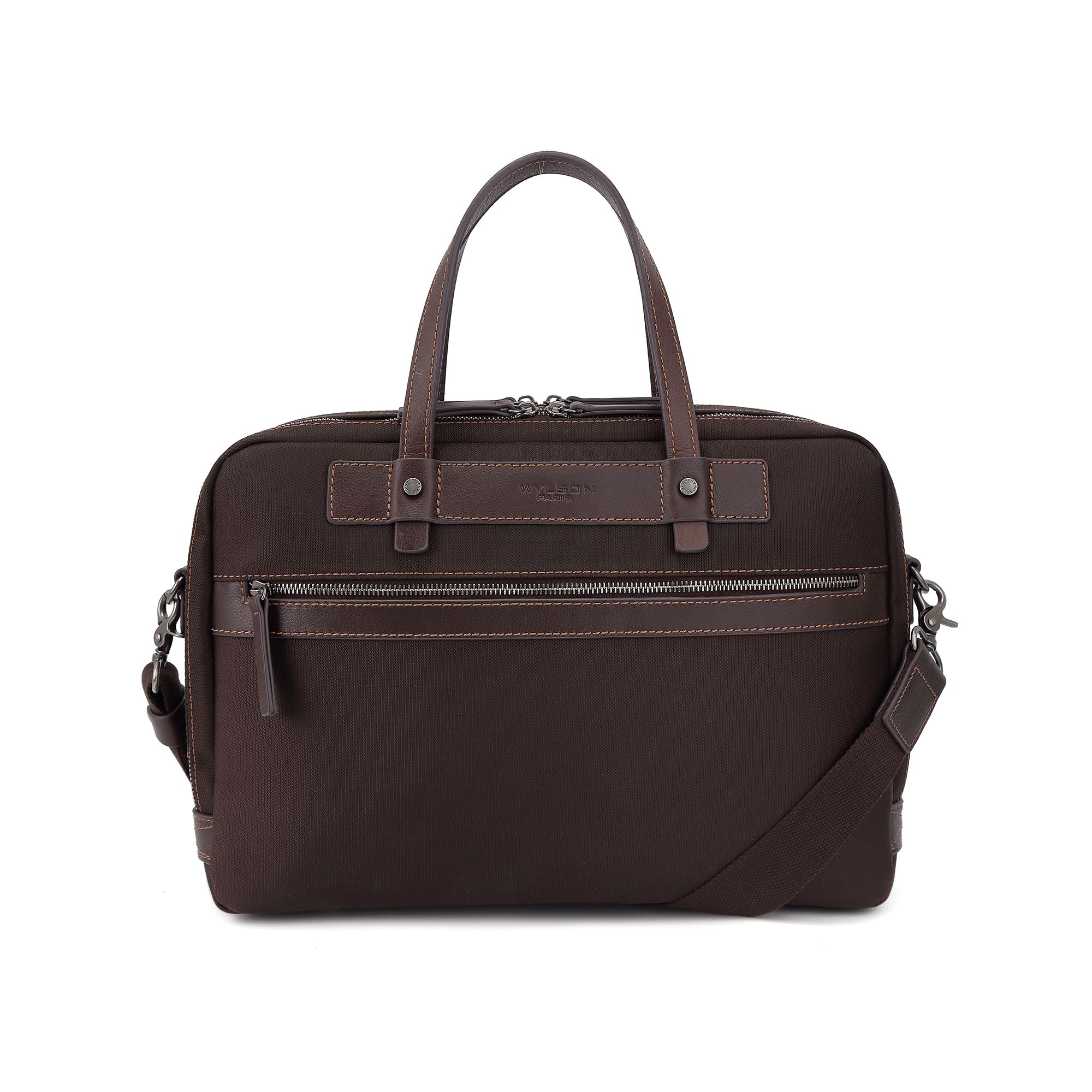 Sac porte-document en polyamide avec garniture en cuir de vachette, cette matière de polyamide est imperméable et infroissable